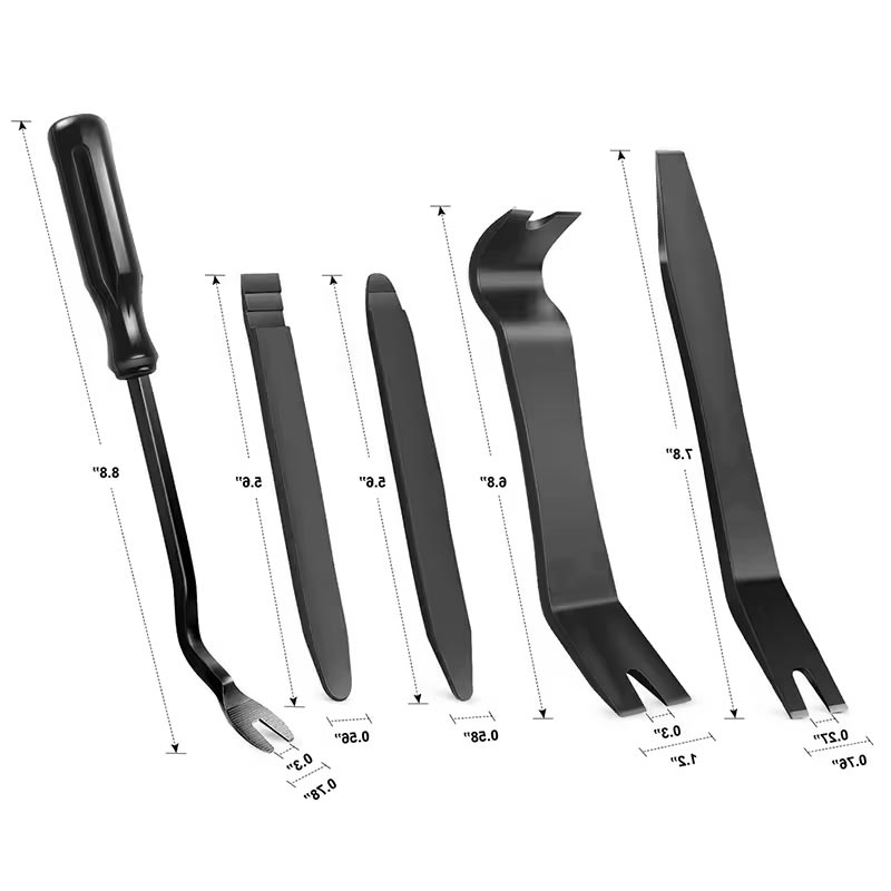 Matériaux de haute qualité :Fabriqués à partir de plastique de qualité supérieure, nos outils sont durables et conçus pour résister à une utilisation régulière sans endommager votre véhicule. Ensemble d'outils complet :Ce kit comprend cinq outils essentiels pour diverses tâches de dépose de garnitures automobiles, offrant une solution complète. Conception sans rayures :Chaque outil est conçu pour éviter les rayures et les dommages aux finitions intérieures et extérieures de votre véhicule. Livraison fiable :Nous garantissons une livraison rapide dans les 15 jours ouvrables pour répondre aux besoins de votre entreprise. Support client exceptionnel :Notre équipe dédiée offre une assistance technique experte et un service après-vente, garantissant un processus d’approvisionnement fluide.