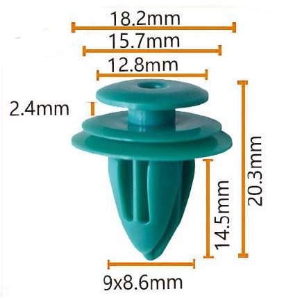 Chaque fixation de Qeepei possède des dimensions précises qui ont été rigoureusement testées pour assurer un ajustement parfait avec votre véhicule GM. La longueur de 20,3 mm, une largeur de 9,6 mm et un diamètre de trou de 8,6 mm. Le matériau plastique vert à haute résistance est choisi pour sa durabilité, sa résistance à l'usure et sa capacité à résister à des températures et des conditions extrêmes.