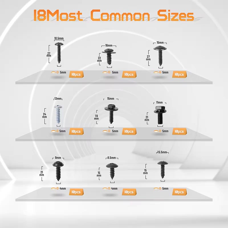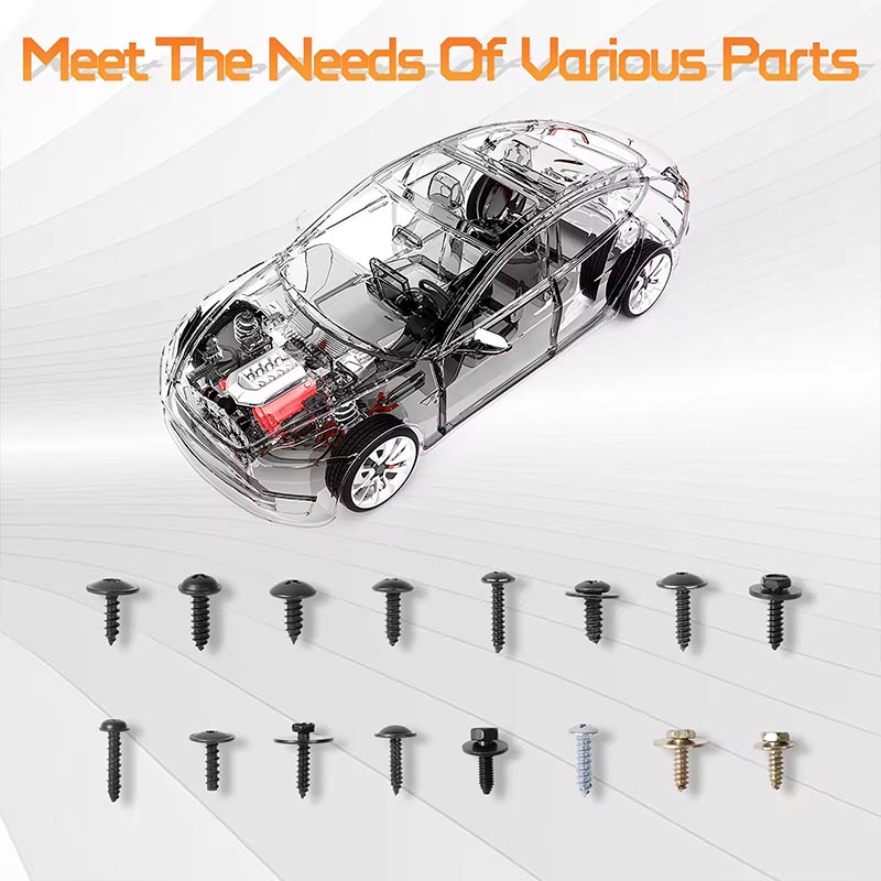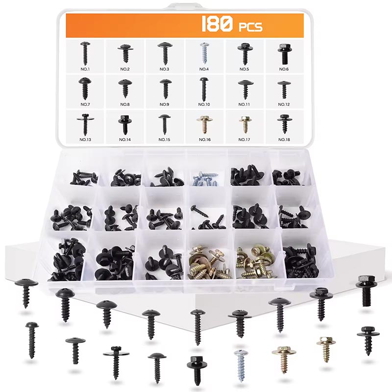 Nos clips de retenue de fixations automobiles pour accessoires de voiture sont parfaits pour une large gamme d'applications automobiles. Le kit de 180 pièces comprend un assortiment de vis métalliques, de rivets et de fixations, tous fabriqués à partir de matériaux de haute qualité pour garantir durabilité et longévité. Que vous travailliez sur des ailes, des panneaux ou des garnitures de carrosserie, ce kit fournit les composants nécessaires pour terminer le travail efficacement. Les tailles et types de fixations variés garantissent que vous disposez du bon clip ou de la bonne vis pour toute tâche de réparation ou de modification.