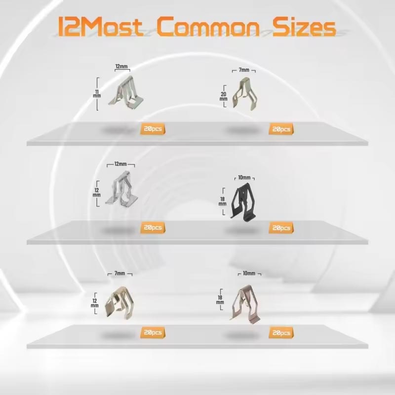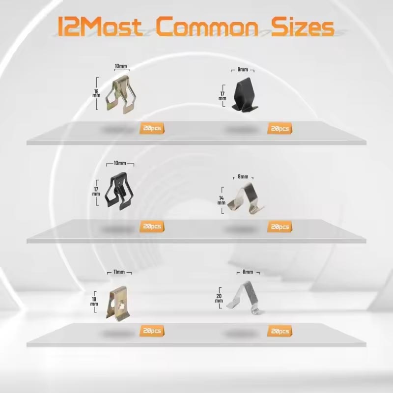 Notre kit de clips de retenue de voiture en vente chaude est un ajout essentiel à toute boîte à outils automobile. Composé de 240 pièces des tailles les plus populaires, ce kit offre une solution polyvalente pour divers besoins de fixation. Chaque clip et outil est fabriqué à partir de matériaux de haute qualité, garantissant des performances durables et une résistance à l'usure et à la corrosion. Que vous travailliez sur des panneaux de garniture intérieure, des clips de coffre ou d'autres composants automobiles, cet ensemble offre la fiabilité et la fonctionnalité dont vous avez besoin pour des réparations et des installations efficaces.