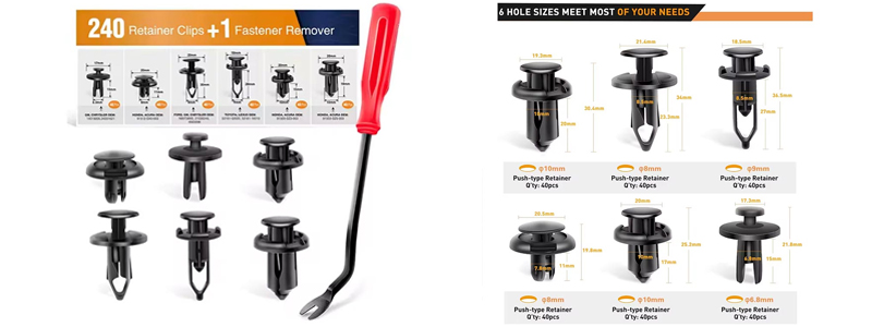 Principe: Grâce aux ongles d'extension, se développant et entrant en contact ferme avec le matériau de base lors de l'installation, il garantit que ces pièces sont fermement fixées au corps de la voiture et résistent à la vibration et à la pression de la voiture.