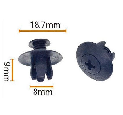 Avec un diamètre de 18,7 mm, il a une saillie unique sur le dessus, qui est conçue pour de grandes pièces ou des occasions qui nécessitent une force de fixation plus forte. Sa taille précise et sa structure optimisée garantissent une correspondance parfaite avec diverses parties de la voiture, qu'il s'agisse de panneaux intérieurs, de garnitures extérieures ou d'autres grands composants, il peut facilement y faire face.