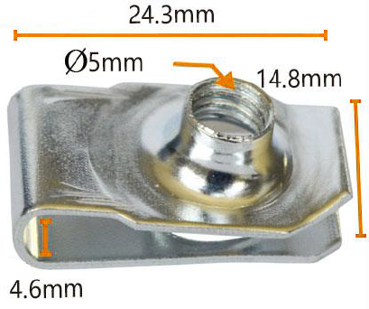 La fixation possède des dimensions globales précises, mesurant 24,3 mm de largeur et 14,8 mm de hauteur, garantissant un ajustement transparent avec des points de fixation sur votre voiture. De plus, la longueur de 4,6 mm mentionnée au bas de l'image pourrait se référer à une dimension critique d'une partie spécifique, mettant davantage l'accent sur le professionnalisme et la précision du produit.