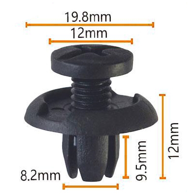 Mesurant précisément 19,8 mm de longueur, 12 mm de largeur, 9,5 mm de hauteur et 8,2 mm d'épaisseur, cette fixation est conforme aux normes de l'industrie, garantissant un ajustement transparent avec diverses pièces automobiles. Fabriqué à partir de plastique noir de haute qualité, il possède une construction légère, une résistance à la corrosion et une résistance à l'usure, améliorant sa longévité.